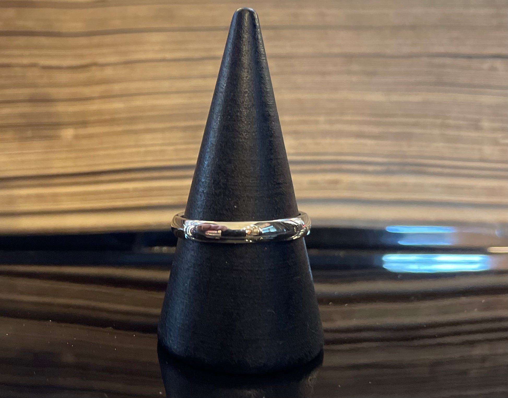 3mm D shape 9 carat white gold wedding ring, handmade on-site at Skulls and Orchids.
