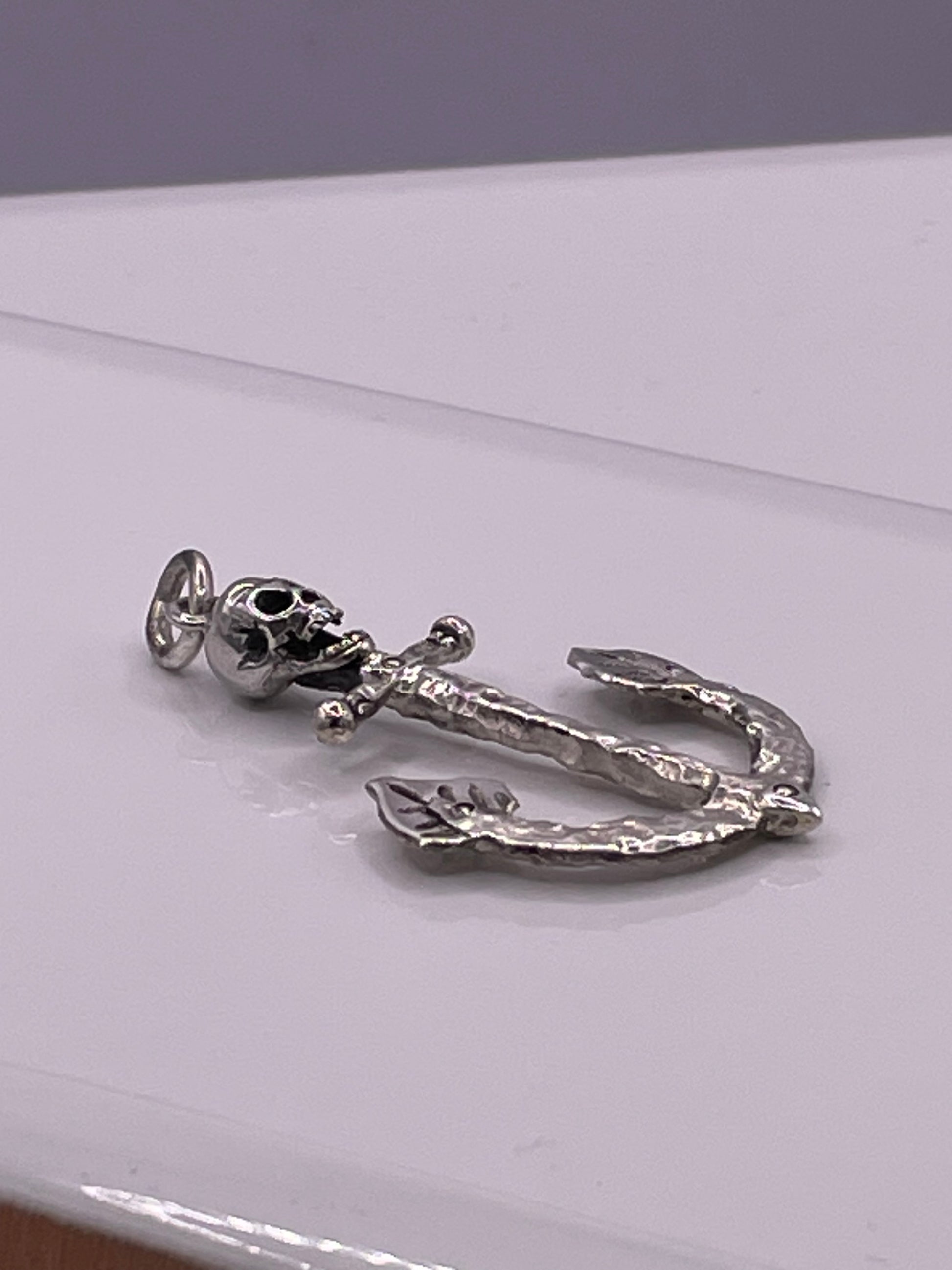 original handmade skull anchor by goldsmith Steve Dennis. Handmade in sterling silver
