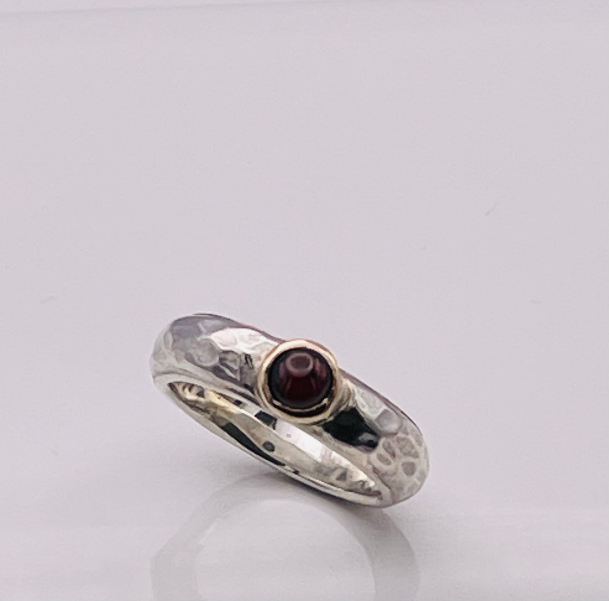 Cabochon Garnet, silver and gold ring