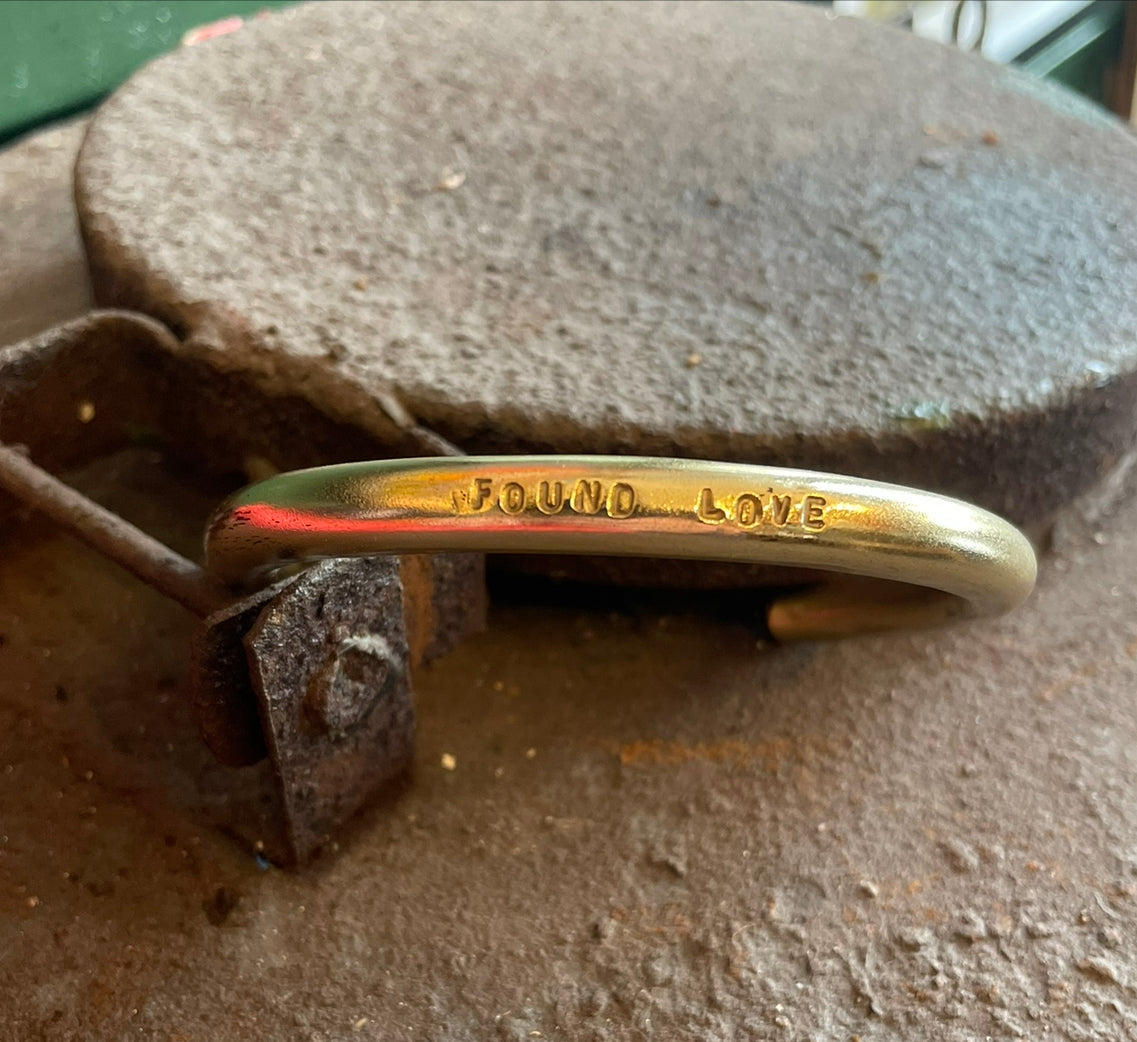 important to note when wearing brass - When brass comes into contact with skin, sometimes a chemical reaction can occur due to the copper content in the alloy. This reaction can be exacerbated by sweat and other factors, resulting in a green discoloration on the skin. The acidity of your skin can also trigger this type of reaction. Simply wash area with warm soapy water and dry thoroughly.