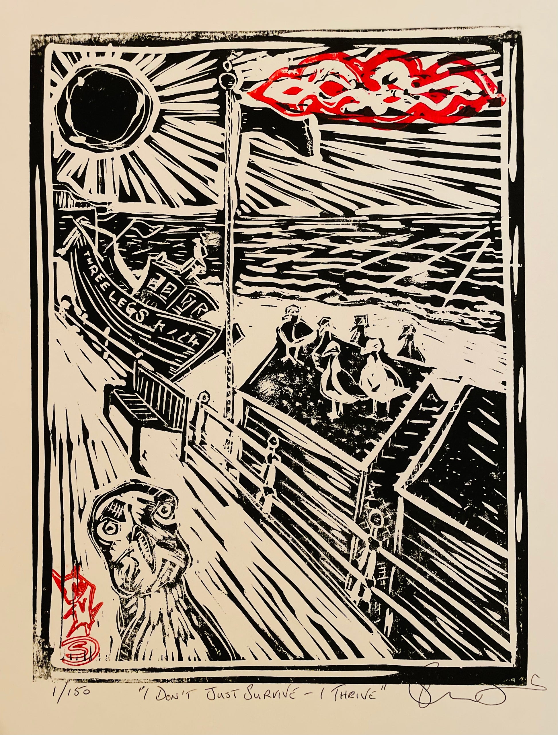 Original lino cut print by Steve Dennis, inspired by his hometown, Bexhill On Sea.