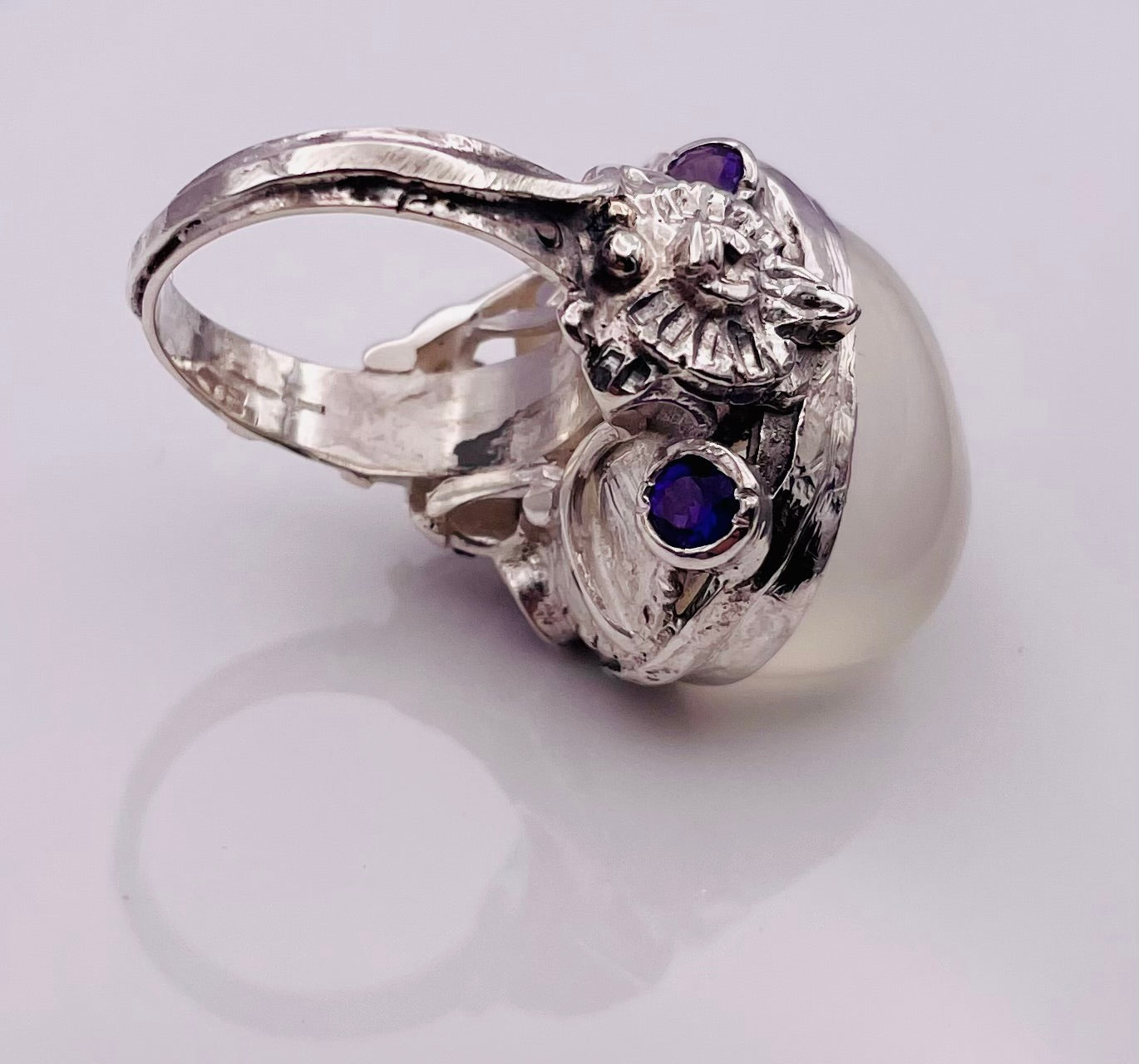 ‘Sacred Garden’ sterling silver ring set with one large moonstone to centre (20 x 15mm)