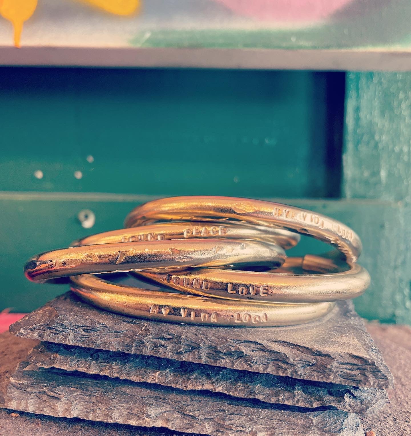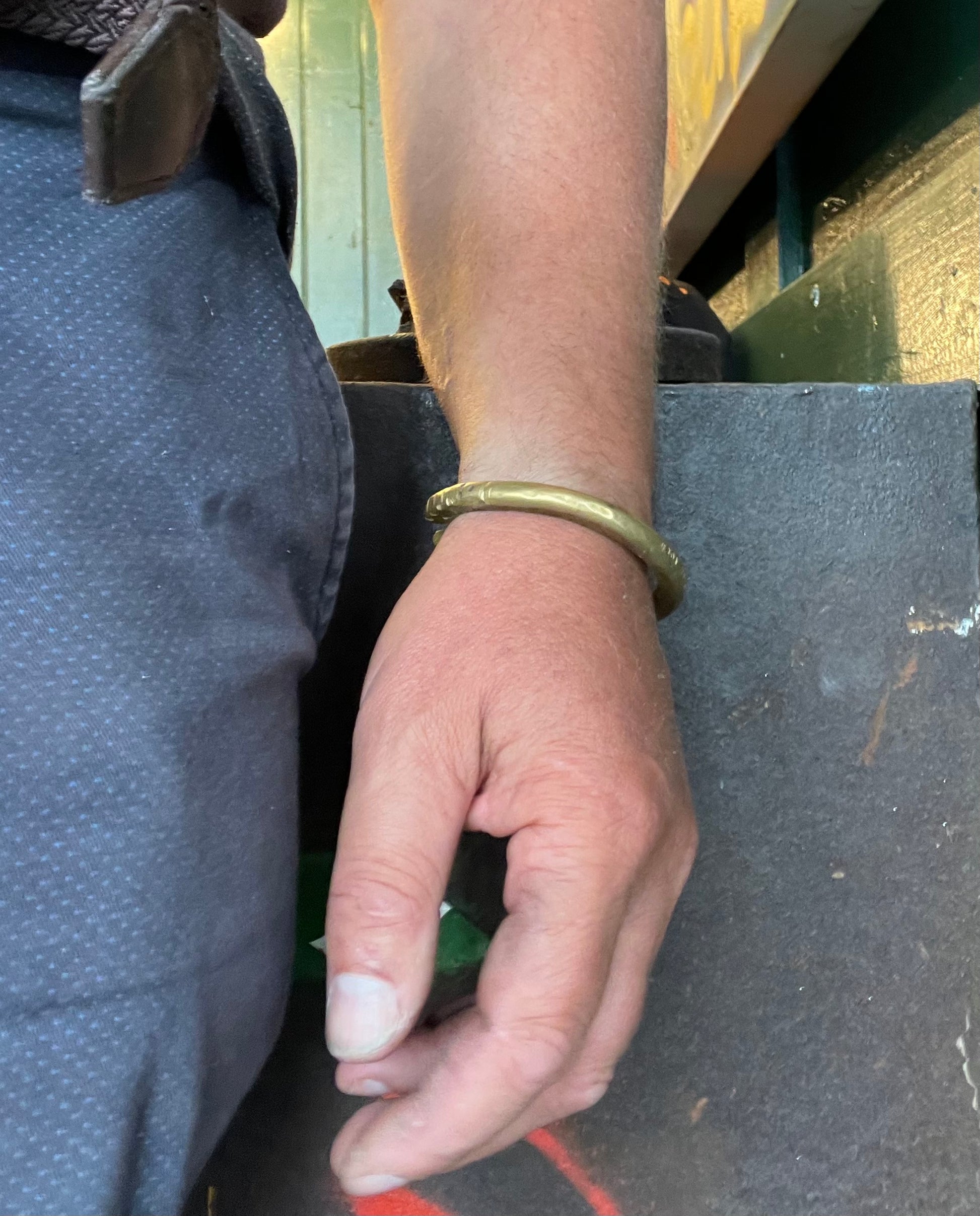 Hand made in our on-site workshop, formed from 8 mm solid brass and struck with steel, these rugged heavyweight bangles are designed to be worn for life.
