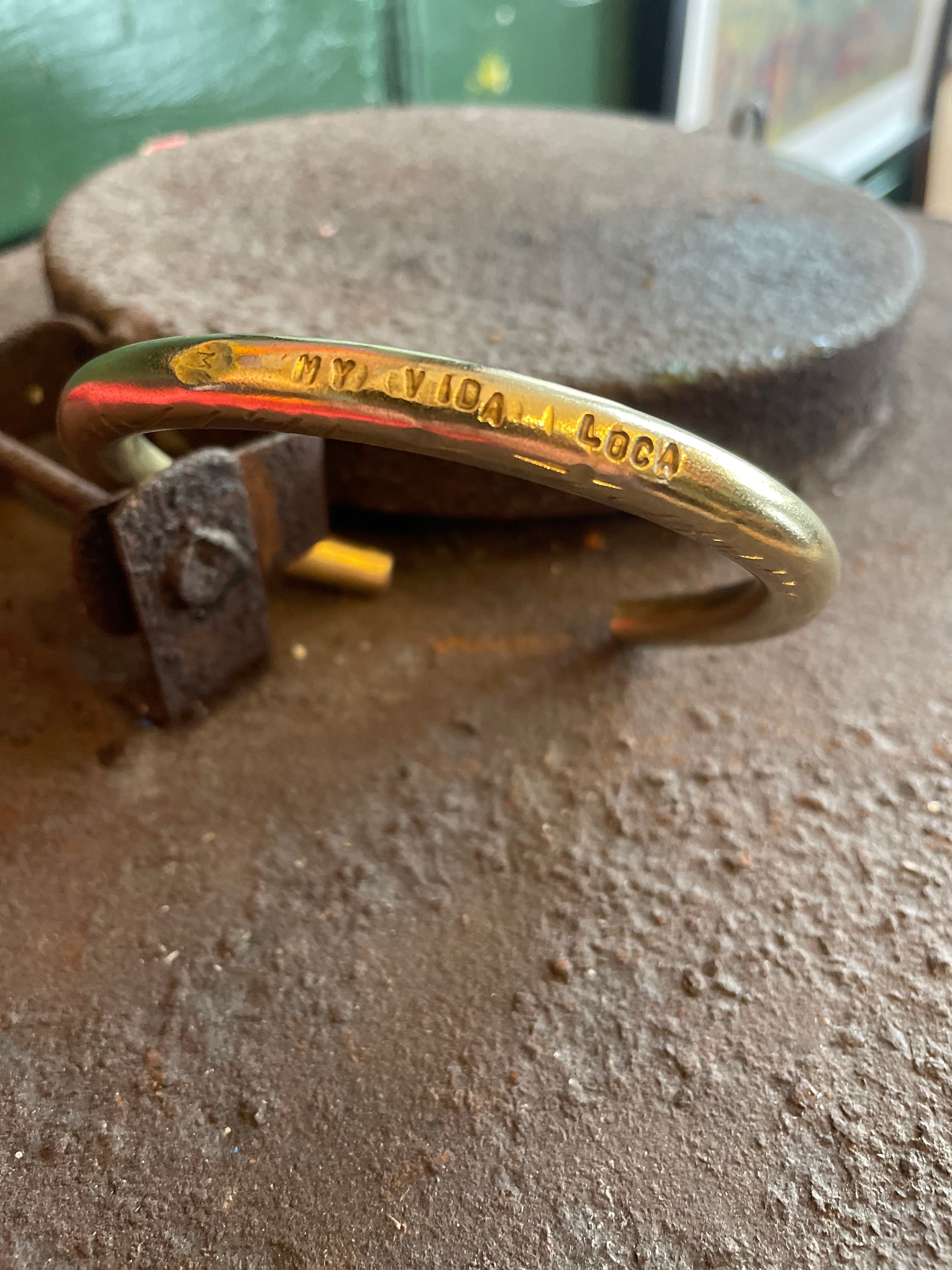 important to note when wearing brass - When brass comes into contact with skin, sometimes a chemical reaction can occur due to the copper content in the alloy. This reaction can be exacerbated by sweat and other factors, resulting in a green discoloration on the skin. The acidity of your skin can also trigger this type of reaction. Simply wash area with warm soapy water and dry thoroughly.