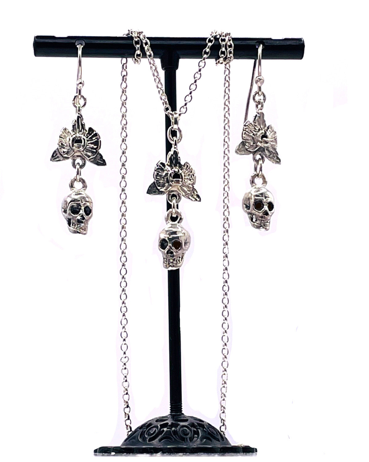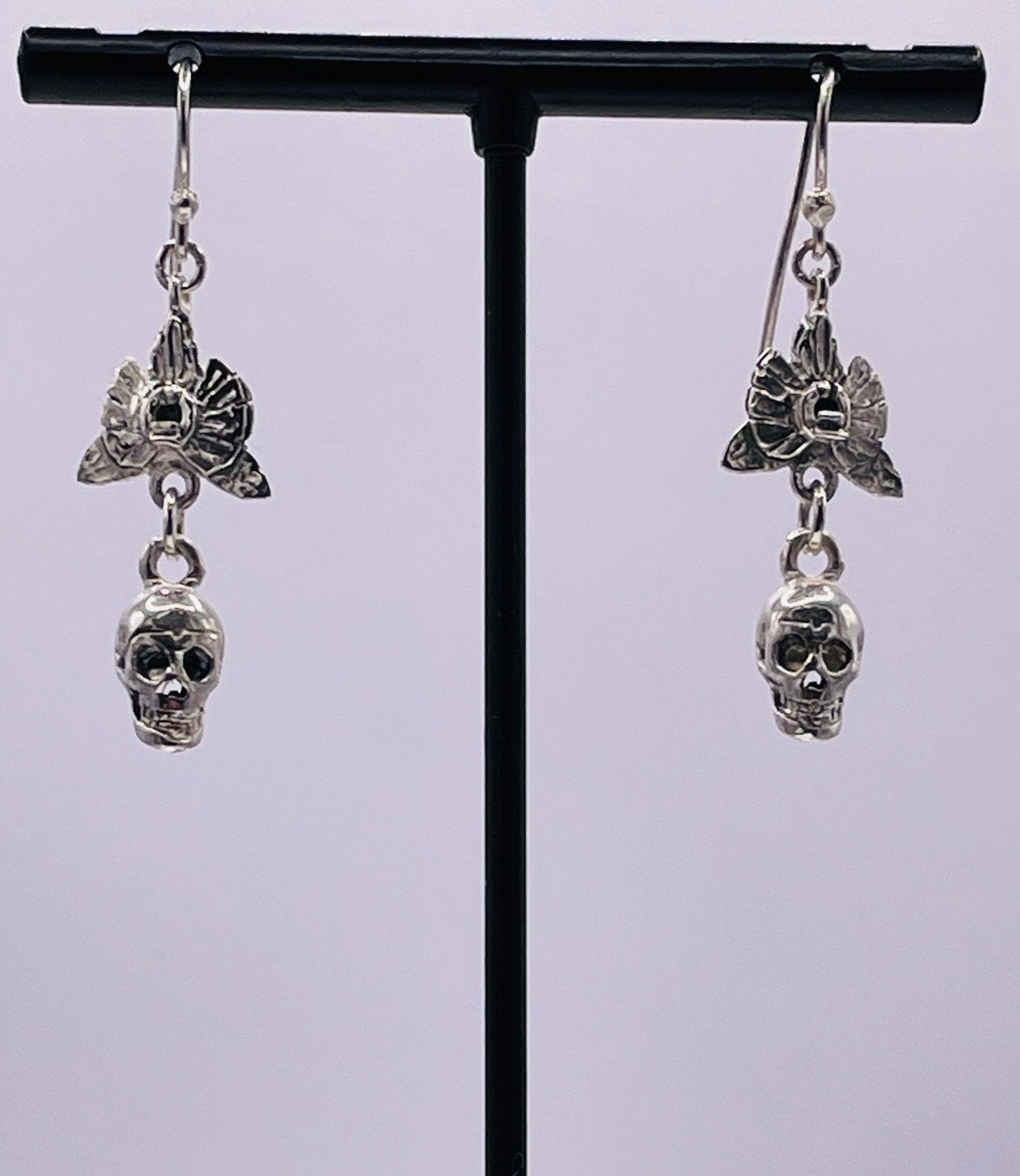 Announcing a unique offer - Skulls and Orchids earrings and pendant, hand carved in sterling silver.