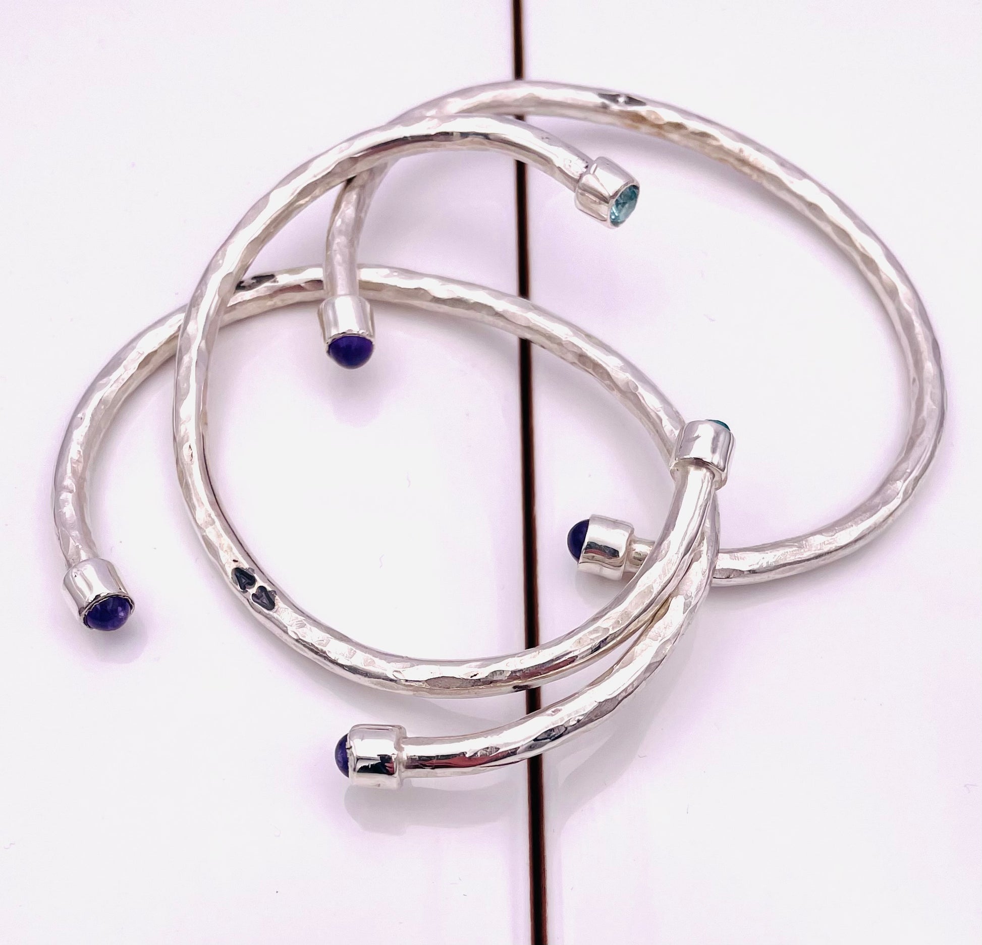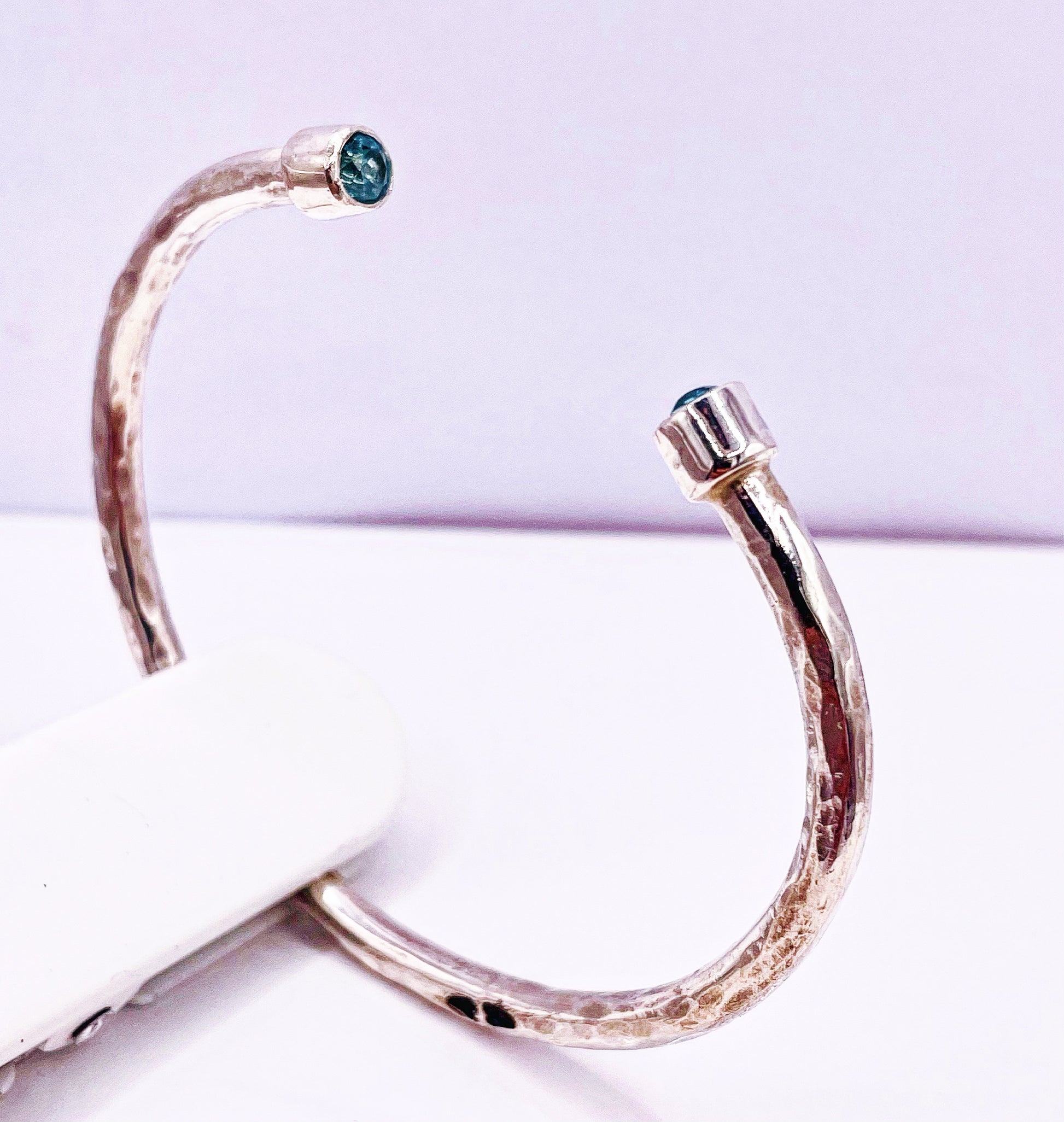 set with stunning blue topaz this solid sterling silver bangle looks great on it own or when stacked with other bracelets
